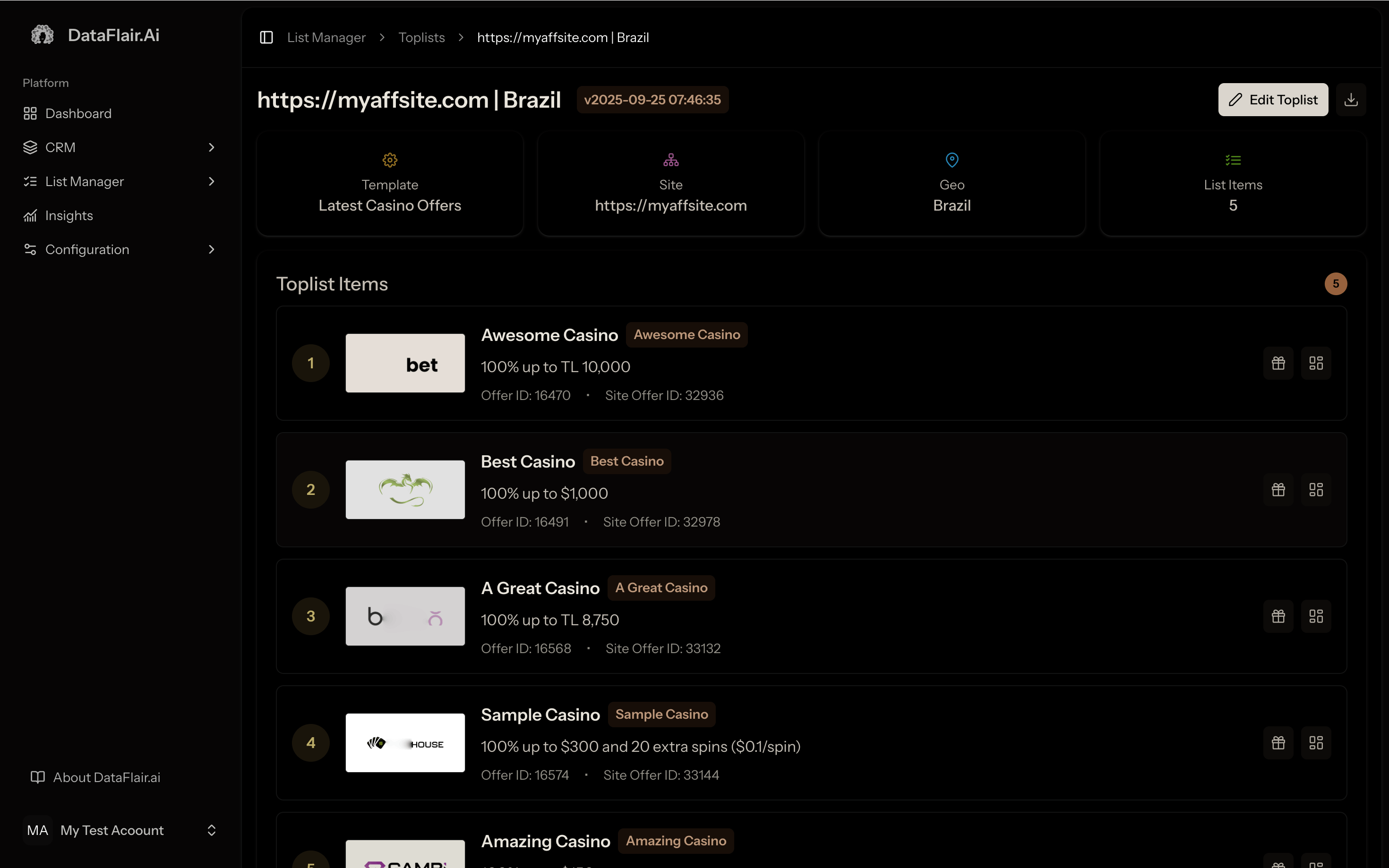 By 9:20 AM, a new, geo-targeted toplist is live via the List Manager.